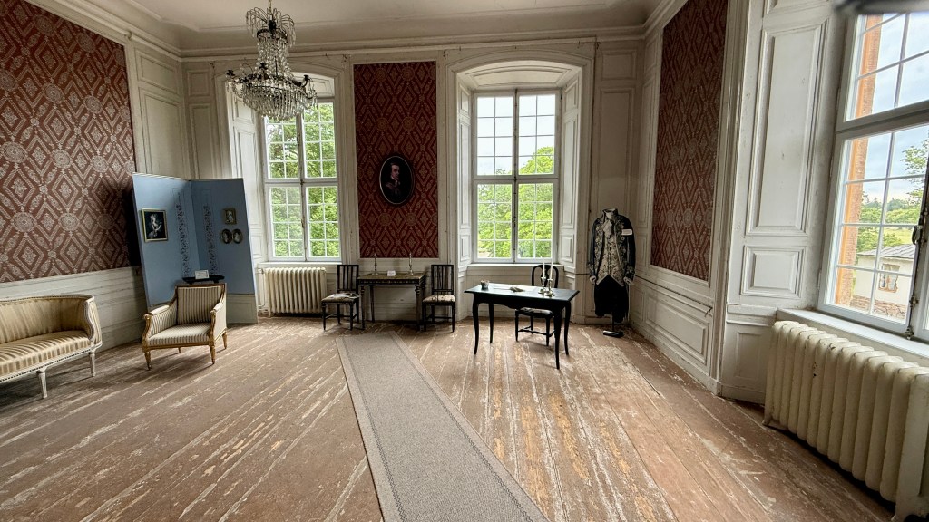 Tillbaka på nedervåningen, bland rokokodetaljerna, återvände jag till 2000-talet. Mitt fokus skiftade nu till museibutiken och Ljungs kyrka, där många Fersensläkter vilar.